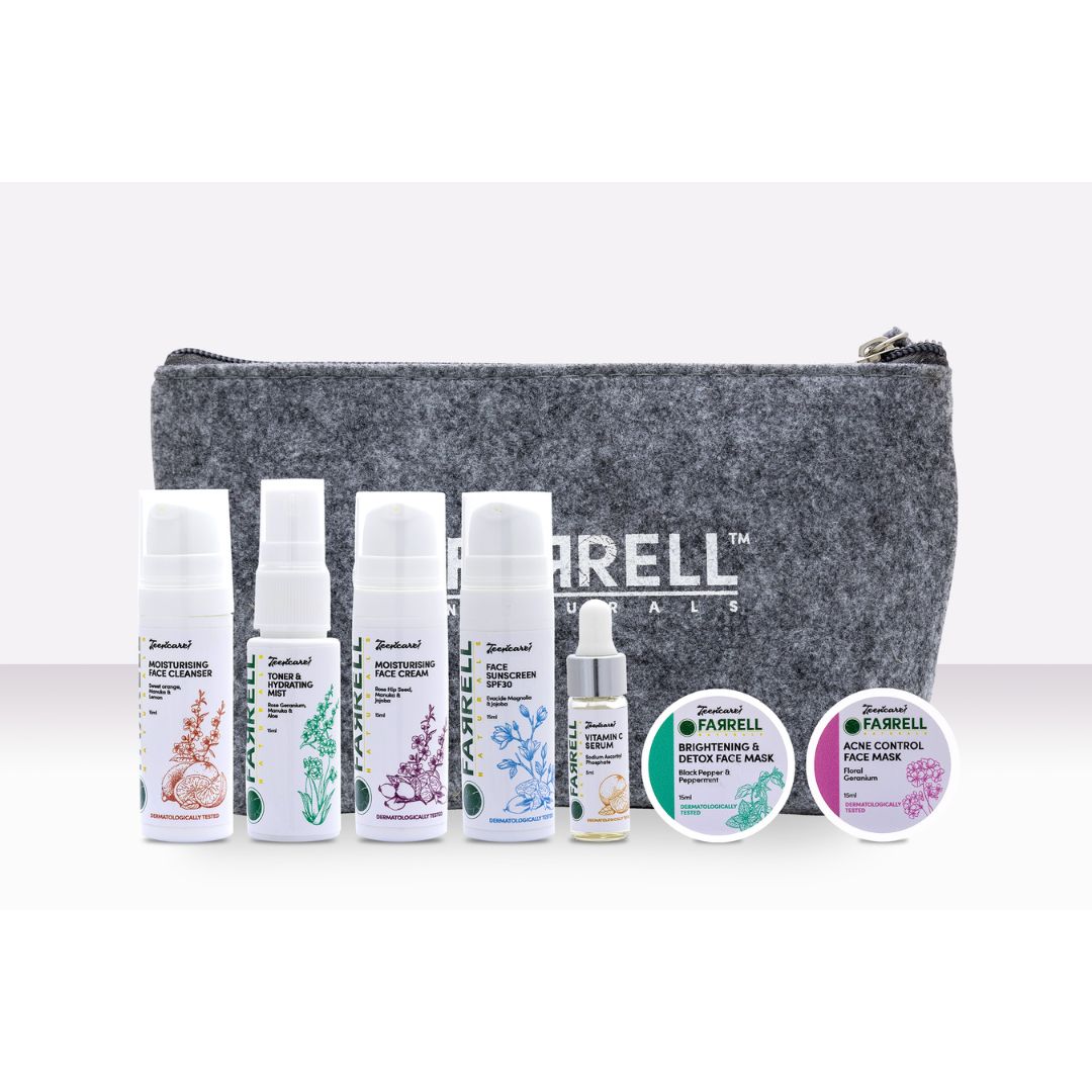 Meet the Teen Glow On-The-Go - your entire skincare routine packed into travel-friendly minis! Perfect for trying our complete line, keeping in your bag for touch-ups, weekend getaways, or gym sessions. This dermatologically-tested collection gives you everything you need to maintain clear, glowing skin wherever life takes you.